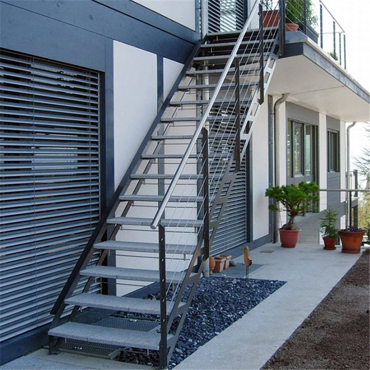 不锈钢或碳钢,硬度强,不易磨损和断裂。而且看上去简洁时尚,质感强!可成为家中的艺术品。金属楼梯可以被制成各种各样的造型,线条流畅优雅、美观大方、方便耐用,可以做多种表面处理和多种颜色。